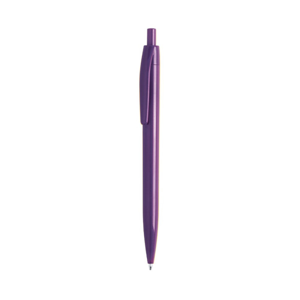 Einfarbiger Druck-Kugelschreiber in verschiedenen lebendigen Farben in glänzender Ausführung. Blaue Tinte.
