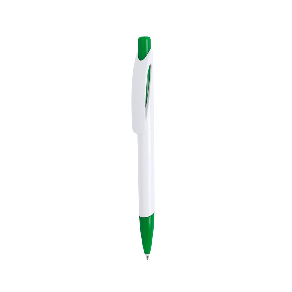 Druck-Kugelschreiber mit auffälligem, zweifarbigem Design mit Kontrastdetails in glänzenden, soliden Farben und geschmeidigem Schaft in solidem Weiß. Mit originellem, gebogenem Clip und farblich passender Spitze. Blaue Tinte.