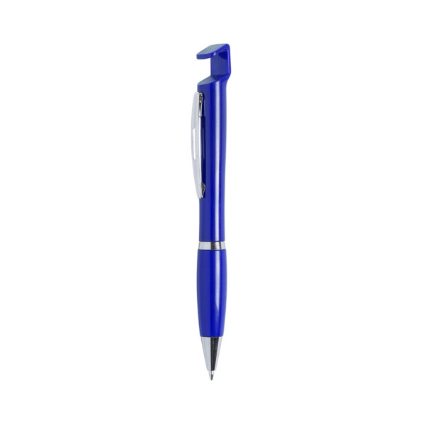 Druck-Kugelschreiber mit Ständer für Mobilgerät sowie auffälligem zweifarbigem Design mit Kontrastdetails in Silber und geschmeidigem Schaft in lebhaften soliden Farben. Mit originellem gestanztem Metallclip in passender Farbe und komfortablem Griff. Blaue Tinte.