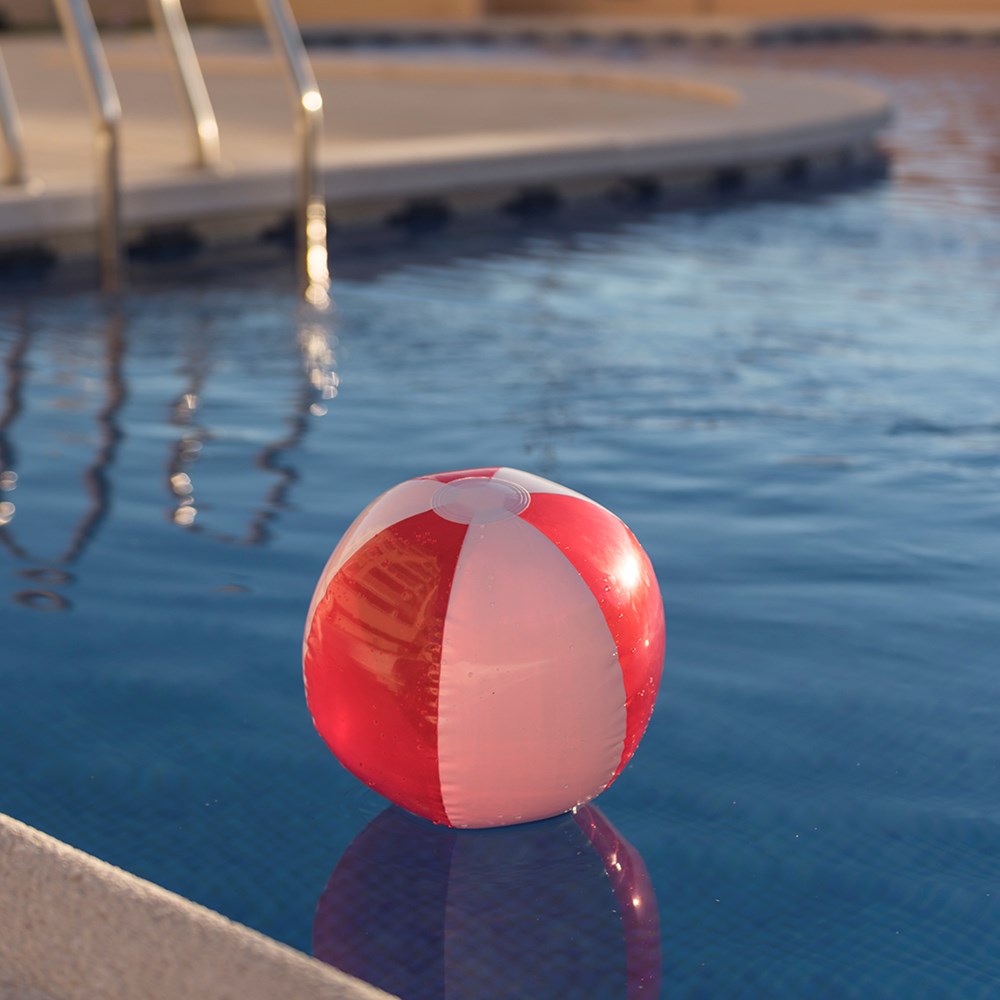 Aufblasbarer PVC-Ball mit zweifarbigem Design aus weißen und transparenten Panelen in lebendigen Farben.