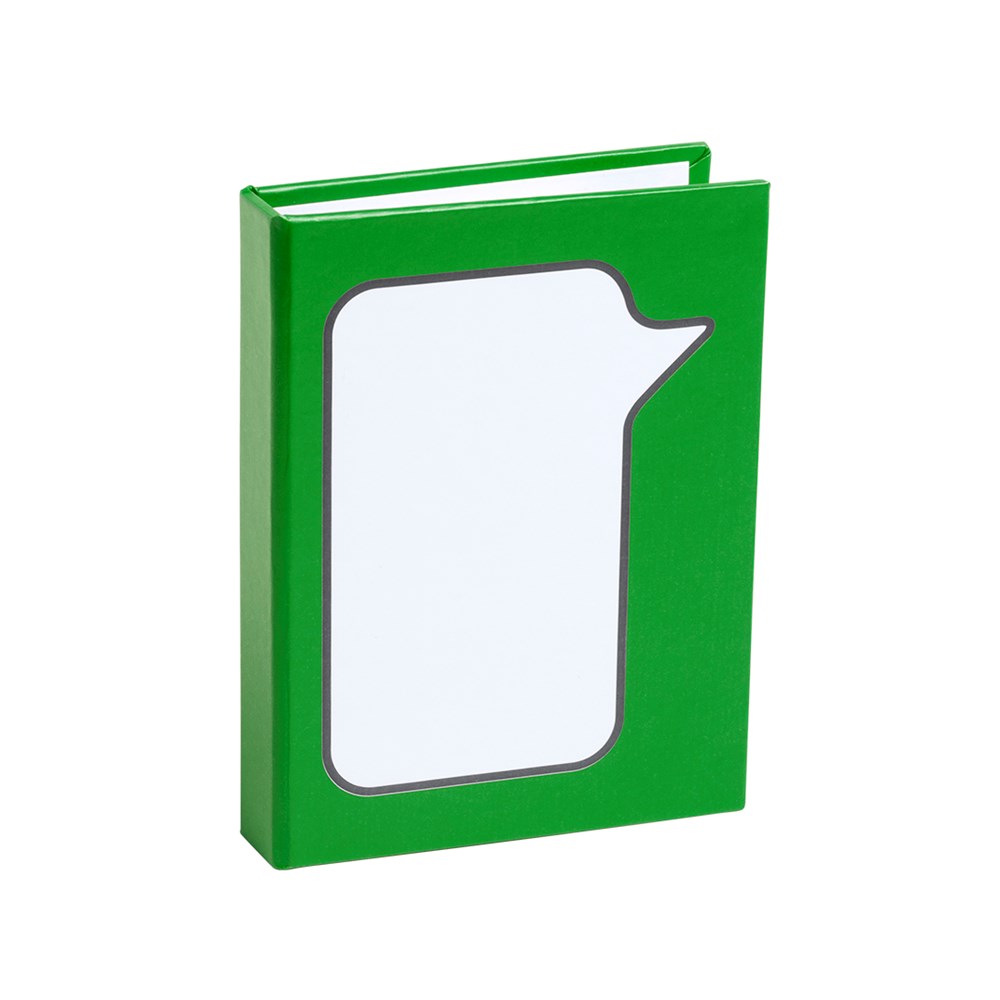 Origineller Notizblock mit Sprechblasen-Design und Soft-Touch-Cover aus solidem Recycling-Karton in verschiedenen Farben. Mit 100 großen Haftnotizen in Form einer Sprechblase sowie 25 mittelgroßen und 125 Mini-Haftnotizen.