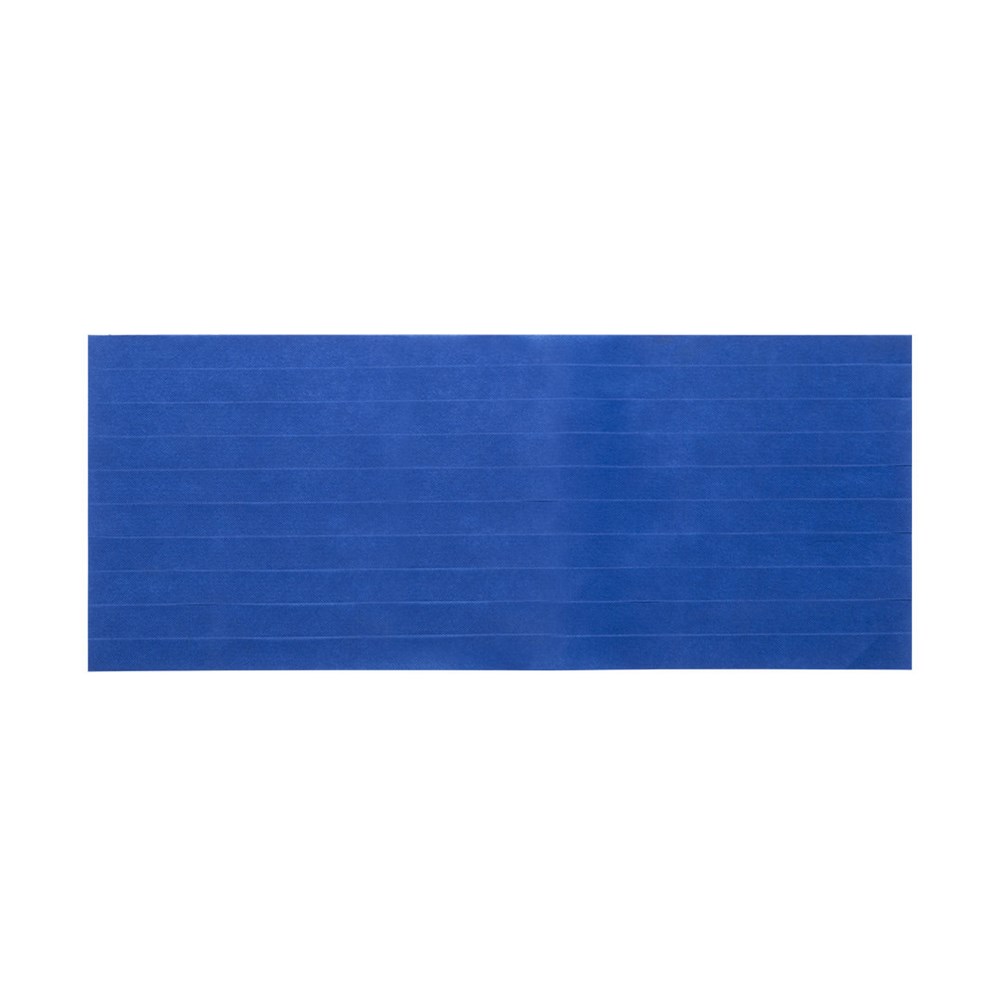 Gestanztes Display mit 10 Non-Woven-Bändern aus Faservlies für Hüte in verschiedenen lebendigen Farben. Präsentiert in ungefaltetem Zustand für einfaches Bedrucken.