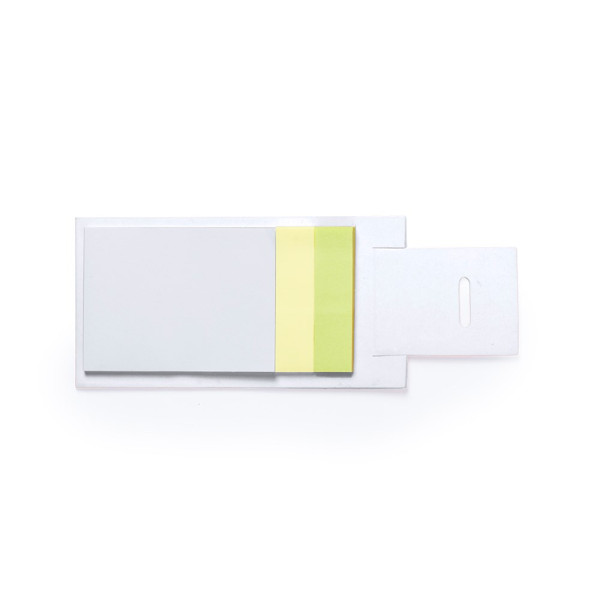 Origineller Haftnotizen-Ständer aus Karton in verschiedenen lebendigen Farben. Enthält 30 große und 50 Mini-Haftnotizen. Präsentiert in ungefaltetem Zustand für einfaches Bedrucken.