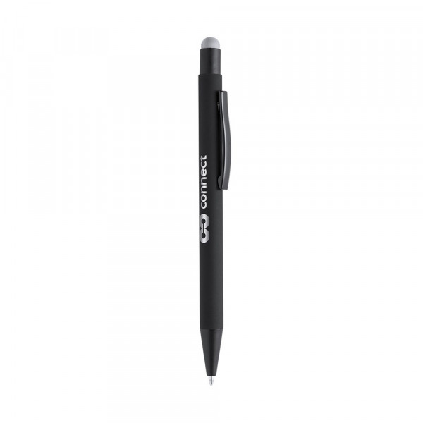 Dreh-Kugelschreiber in Schwarz mit Stylus und Druckknopf in verschiedenen Farben. Mit Metall-Clip in Schwarz. Speziell für den Laserdruck entworfen und mit einer speziellen Außenbeschichtung versehen, durch die Ihr Logo perfekt graviert wird - passend zur Farbe des Druckknopfes. Jumbo-Patrone mit blauer Tinte.