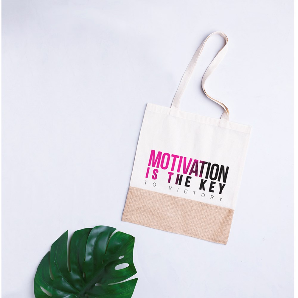 Ökologische Tasche aus einer robusten Kombination von natürlichen Materialien - Baumwolle und Jutefasern (245 g/m2). Mit attraktivem, zweifarbigem Design, Steppnähten und 70 cm langen, verstärkten Henkeln. Belastbar mit bis zu 8 kg.