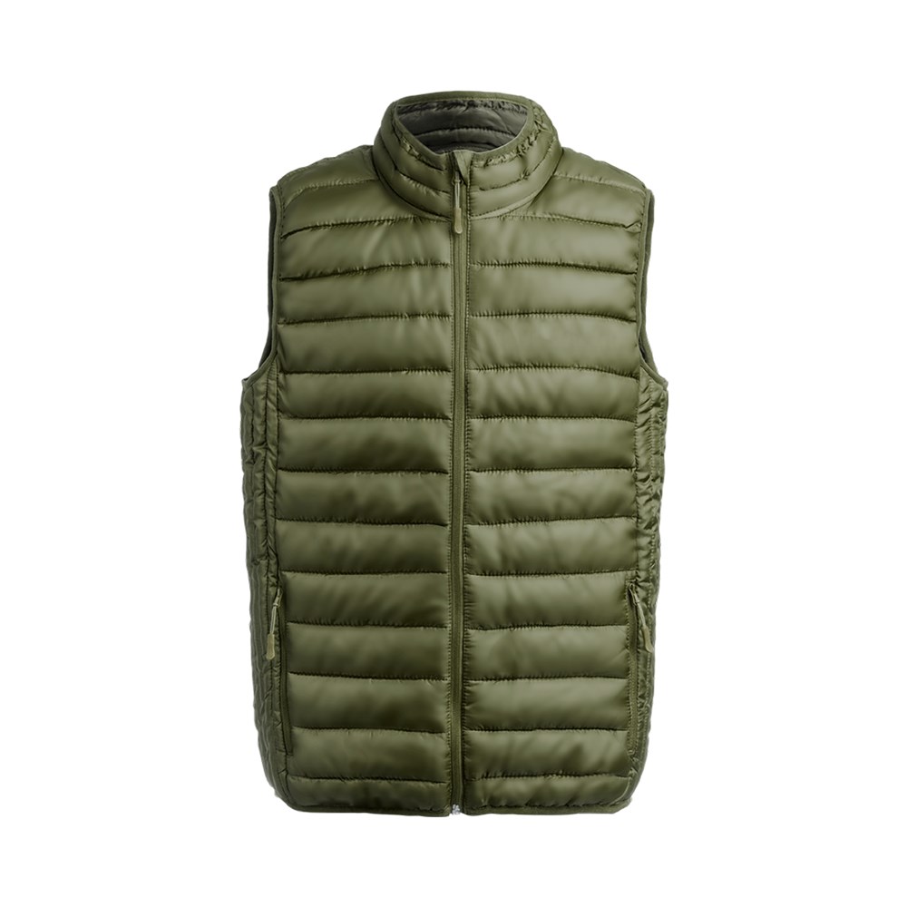 Weste au warmem und weichem Material aus 100% Polyester. Aus extra leichtem, kompaktem, wasser- und winddichtem Material, mit Innenwattierung. Reißverschluss mit Zipper und großen Seitentaschen. Kragen mit Reißverschluss und Knopfleiste und Seitentaschen mit Zipper. Inklusive praktischer Tragetasche. Erhältlich in den Größen S, M, L, XL, XXL.