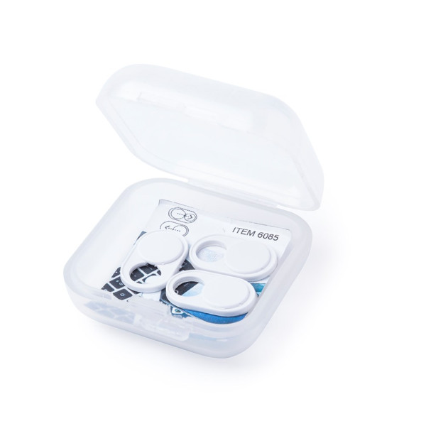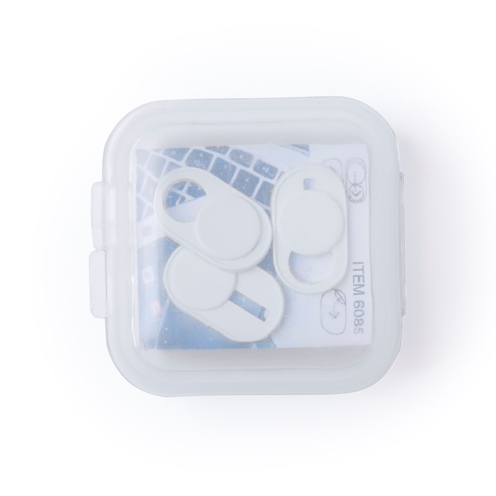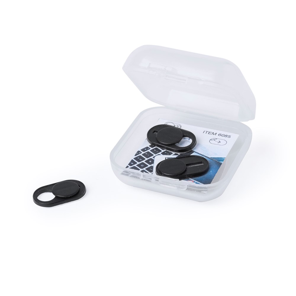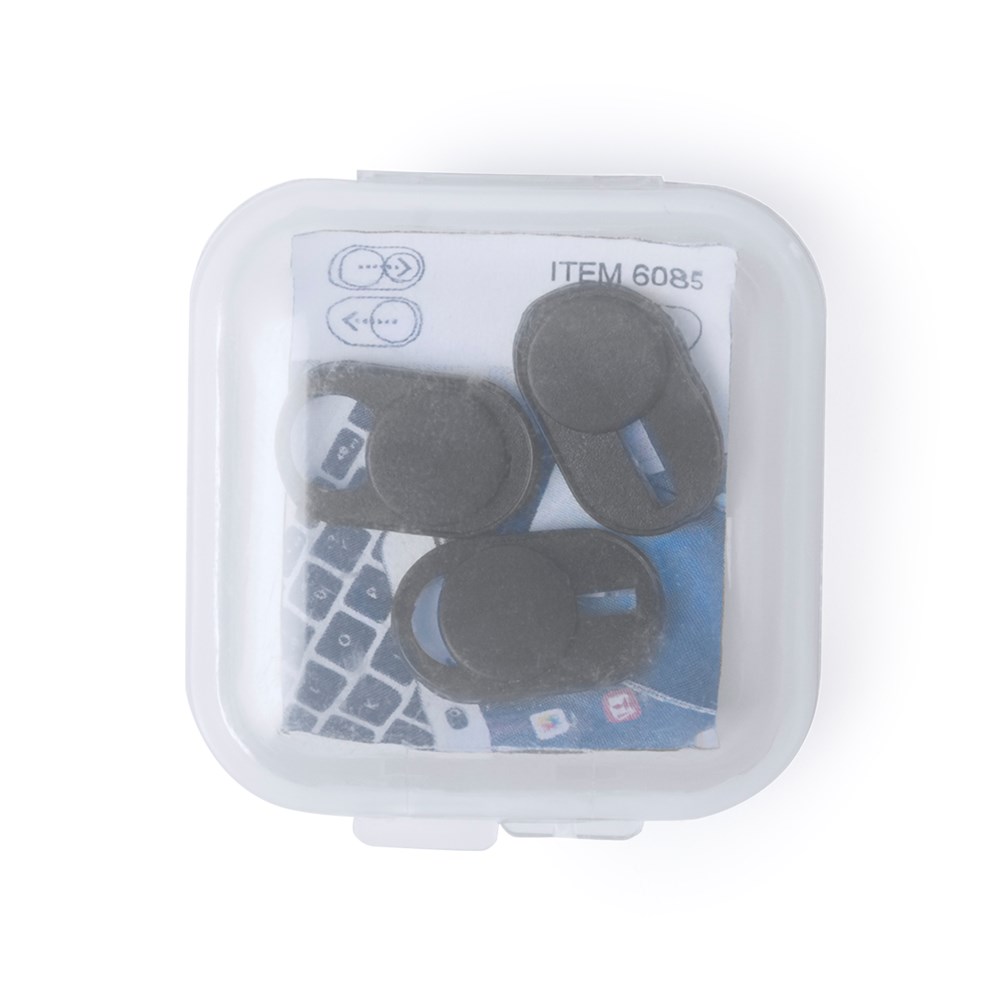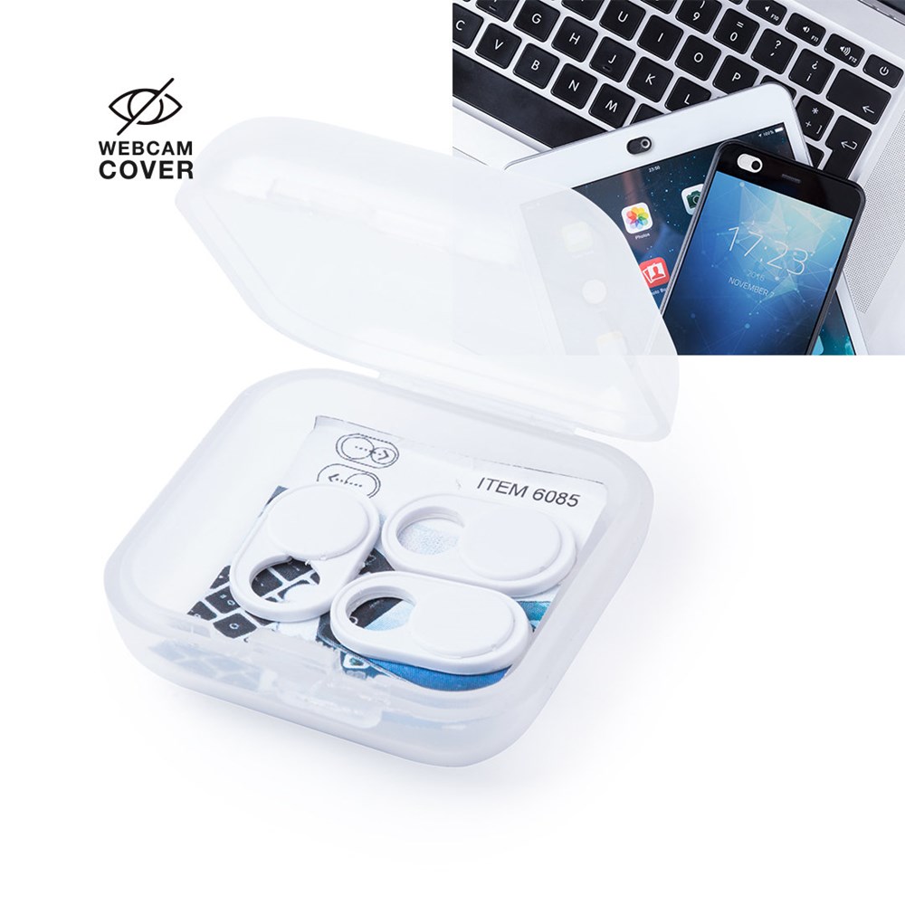 Cover für Webcam zum Schutz der Privatsphäre. In ultrakompakter Größe und verpackt in einer individuellen, halbtransparenten Dose mit 3 Stück. Erhältlich in den Farben Weiß und Schwarz. Präsentiert in einem individuellen Beutel mit Kartoneinlage.