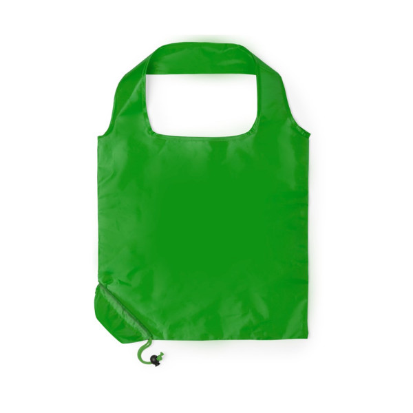 Faltbare Tasche aus weichem 190T Polyester. Mit bequemem Griff, farblich passendem Zugband und Kordelstopper für einfaches Verstauen.