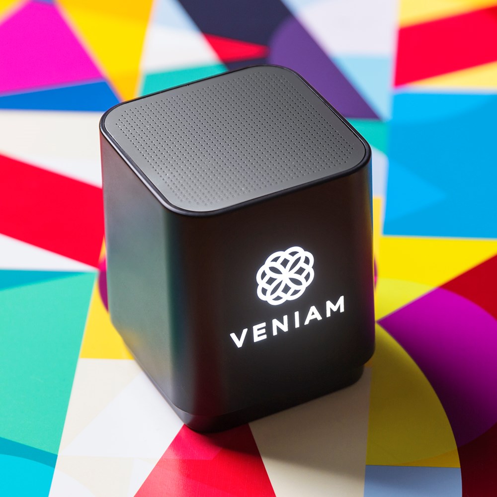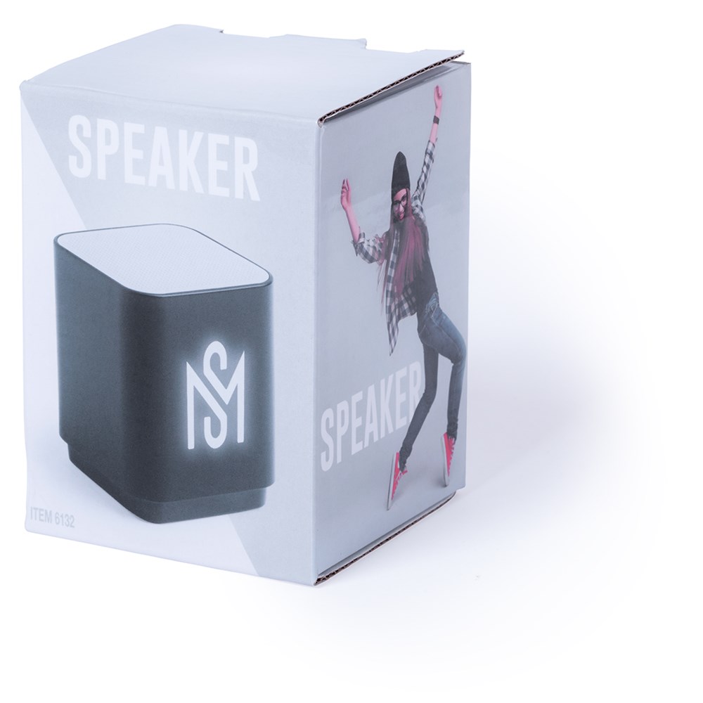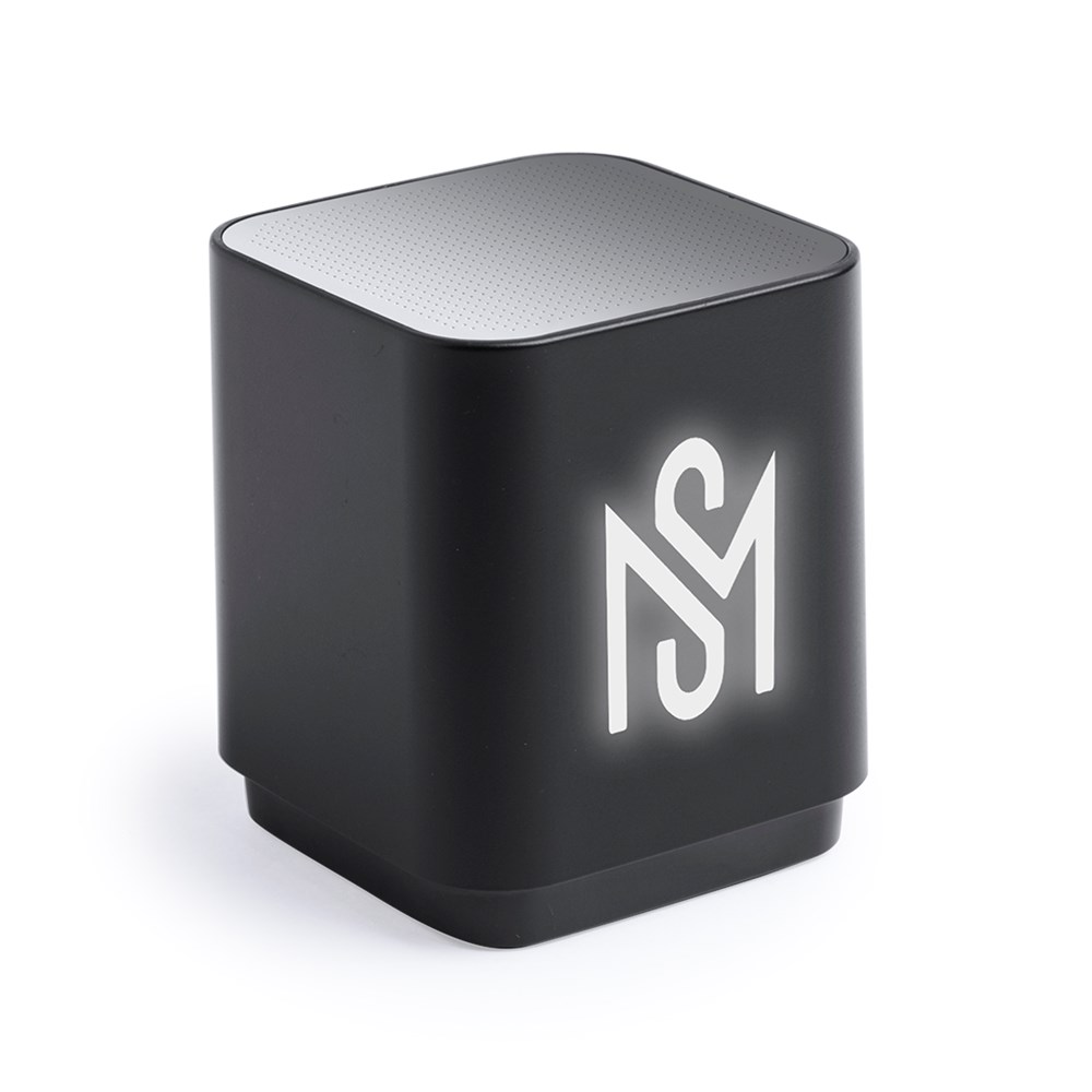 Bluetooth-Lautsprecher mit LED-Beleuchtung im Inneren und speziell für den Laserdruck entworfenem Gehäuse, durch das das Logo beleuchtet wird. Mit Freisprechfunktion und 3 W Leistung. Aufladbar über USB-Kabel (inklusive). Präsentiert in einer attraktiven Designbox.