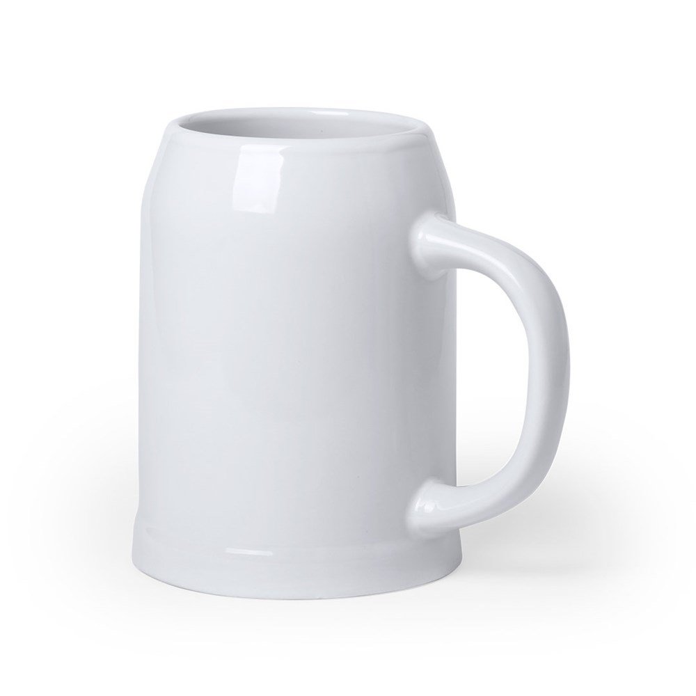 Keramikbecher in weißer, eleganter Ausführung für Bierliebhaber. 700 ml Fassungsvermögen, mit bequemem Griff. Geeignet für die Mikrowelle und wird in einer individuellen weißen Box geliefert.