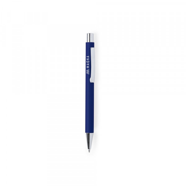 Kugelschreiber mit Push-Up-Mechanismus in elegantem zweifarbigem Design. Aluminiumgehäuse mit Gummiausrüstung, speziell für den Laserdruck entwickelt, dass das Logo in silberfarbenem Ton zeigt. Verchromte Spitze und Drücker, mit Metallclip. Erhältlich in einer breiten Palette von Farben, mit Jumbo-Patrone und blauer Tintenmine.