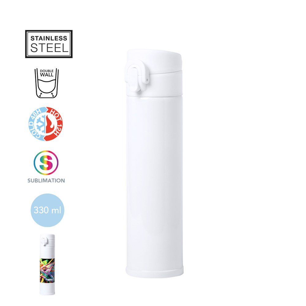 330 ml Thermo in Edelstahl. Doppelwandig für eine bessere und längere Erhaltung der Flüssigkeitstemperatur, mit Sicherheitsschloss und mit einem einfachen Öffnungsmechanismus mit Knopfdruck. Speziell für den Sublimationsdruck hergestellt und in einer attraktiven Design-Box präsentiert.Bedienungsanleitung in Spanisch und Englisch verfügbar.
