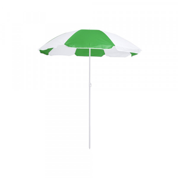 Strandschirm aus 8 Bahnen aus widerstandsfähigem Nylon und in 2 Farbkombinationen. 150 cm Durchmesser, mit Seitenschürzen mit Keder und metallbeschichteten Rohren in weißer Farbe. In der Höhe verstellbar und in einer PVC-Hülle mit Schulterriemen präsentiert. Erhältlich in einer breiten Palette von kombinierten Farben.