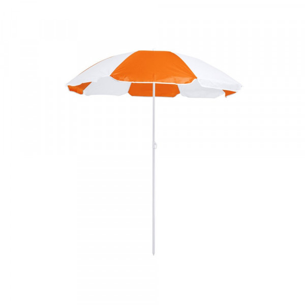 Strandschirm aus 8 Bahnen aus widerstandsfähigem Nylon und in 2 Farbkombinationen. 150 cm Durchmesser, mit Seitenschürzen mit Keder und metallbeschichteten Rohren in weißer Farbe. In der Höhe verstellbar und in einer PVC-Hülle mit Schulterriemen präsentiert. Erhältlich in einer breiten Palette von kombinierten Farben.