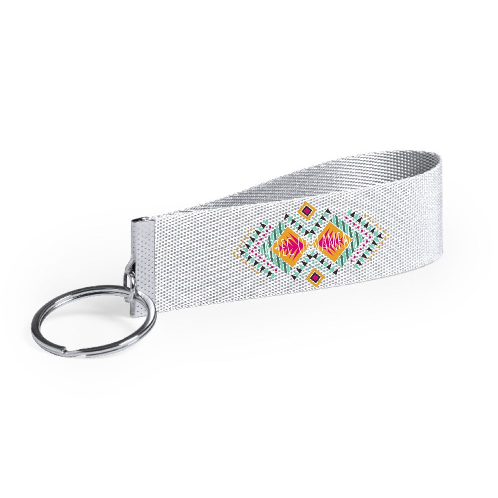 Schlüsselanhänger aus widerstandsfähigem Polyestermaterial mit Zubehör aus Metall. Erhältlich in einer breiten Palette von Farben.