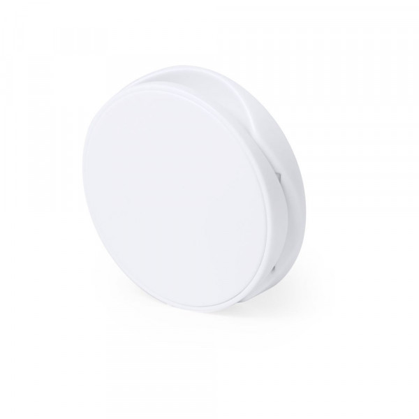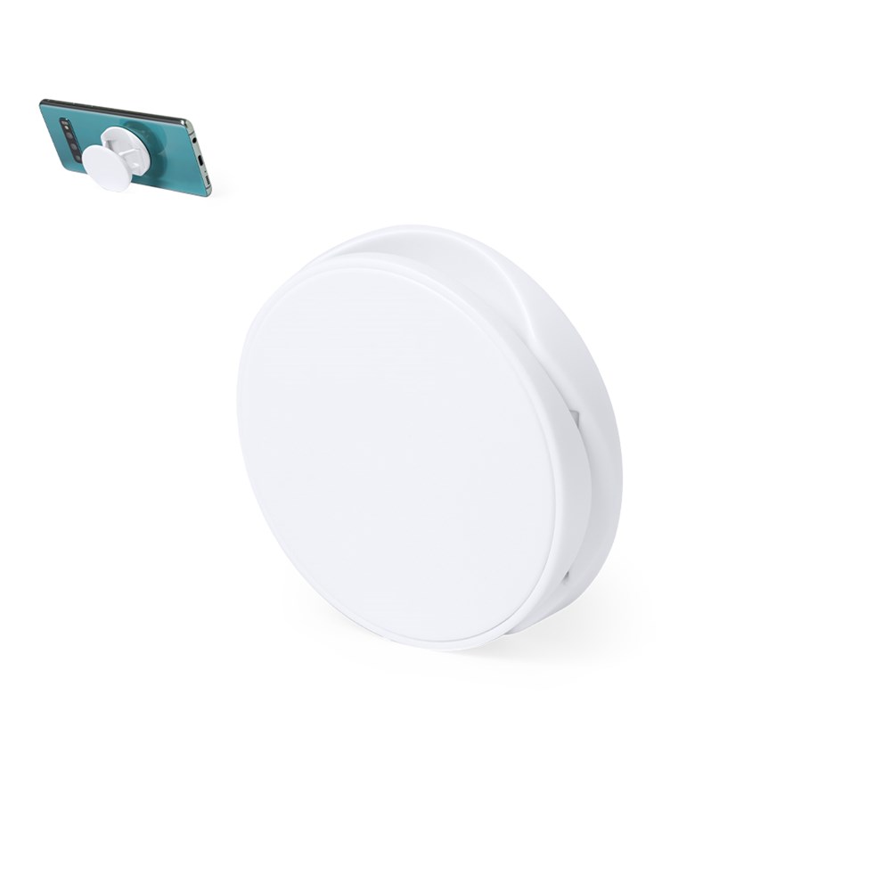 Klapphalterung für Smartphone in elegantem, weißem Farbdesign. Speziell für den Tampondruck entwickelt, mit 3M-Klebeband, extra starker Fixierung und rückstandsfrei vom Gerät ablösbar.