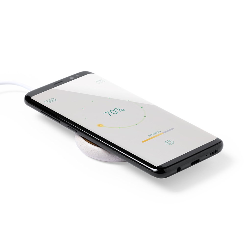 Drahtloses Ladegerät mit rundem Design. Ladefläche aus Bambus und Schale aus Weizenstroh, um die Verwendung natürlicher Rohstoffe zu fördern und Schadstoffemissionen zu reduzieren. Led-Anzeige, einschließlich Mikro-USB-Ladekabel und kompatibel mit Geräten, die mit drahtloser Ladetechnologie ausgestattet sind. Sicherheitsschutz zur Vermeidung von Überhitzung, Überladung und Kurzschluss. Präsentiert in einer attraktiven Box im Naturdesign.