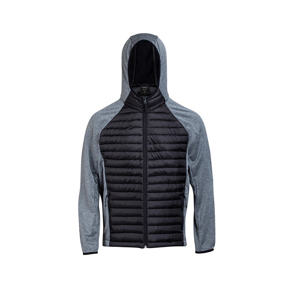 Atmungsaktive Unisex-Jacke aus einer Kombination von Softshell- und Polyester-Materialien, mit Feder-Touch-Steppung auf Vorder- und Rückseite. Kapuze und Ärmel im Ranglan-Stil mit elastischen Abschlüssen an Kragen, Manschetten und Saum. Elegante Konstruktion in schwarzer und grauer Farbkombination, wind- und wasserfest. Reißverschluss und seitliche Reißverschlusstaschen mit Zuglaschen zum einfachen Öffnen. Erhältlich in den Größen S, M, L, XL, XXL.