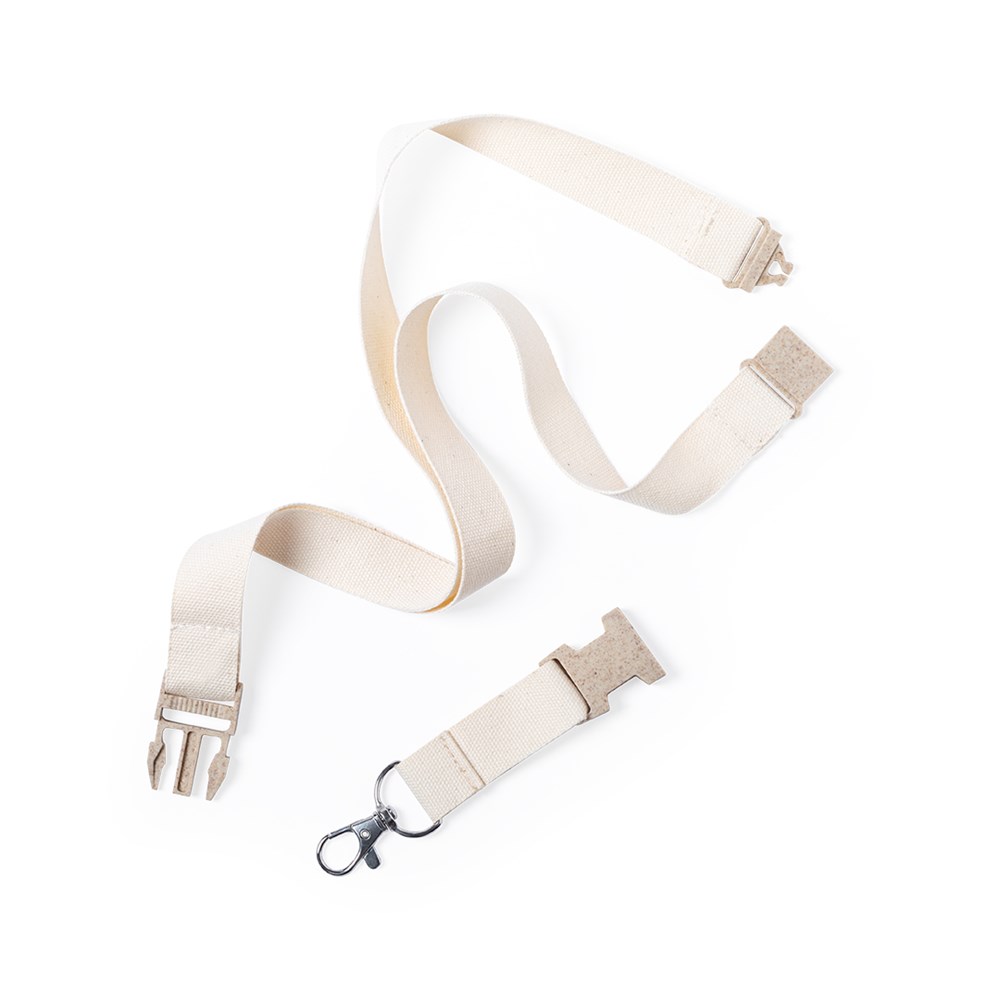 Nature Line Schlüsselband aus 100% Baumwollmaterial. Schnalle und Sicherheitsverschluss aus Weizen/PP-Rohrkragen, um die Verwendung natürlicher Rohstoffe zu fördern und umweltschädliche Emissionen zu reduzieren.Mit Metall-Drehkarabiner und in Naturfarbe erhältlich.