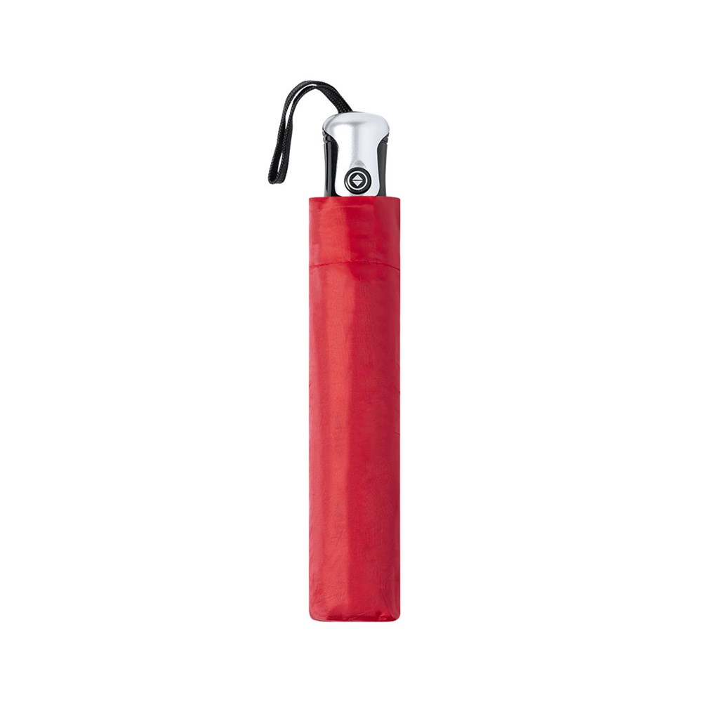 Faltbarer Schirm mit 8 Paneelen und 98cm Durchmesser. Gewebe aus widerstandsfähigem Polyester 190T, mit automatischem Öffnungs-/Schließmechanismus und Anti-Wind-System. Silbermetallic und Glasfaserrippen. Klettverschluss und ergonomischer Griff mit Tragegurt. Inklusive passendem Bezug.