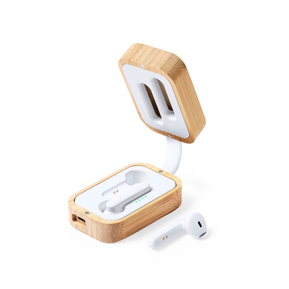 Nature Line In-Ear-Kopfhörer mit Bluetooth 5.0-Anschluss und Lithium-Batterie. In eleganter weißer Ausführung und präsentiert in einem Bambus-Ladeetui. Sie sind ergonomisch gestaltet und verfügen über eine im Headset integrierte Touch-Control-Taste mit passender Ladestation und LED-Ladestatusleuchte. Freisprecheinrichtung und wiederaufladbar, mit Micro-USB-Kabel im Lieferumfang. Präsentiert in einer attraktiven Box im Öko-Design.
