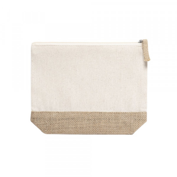 Natur Line Kosmetiktasche aus einer Kombination von laminierter Jute und natürlicher Baumwolle. Mit Reißverschluss und passendem Jutegriff.