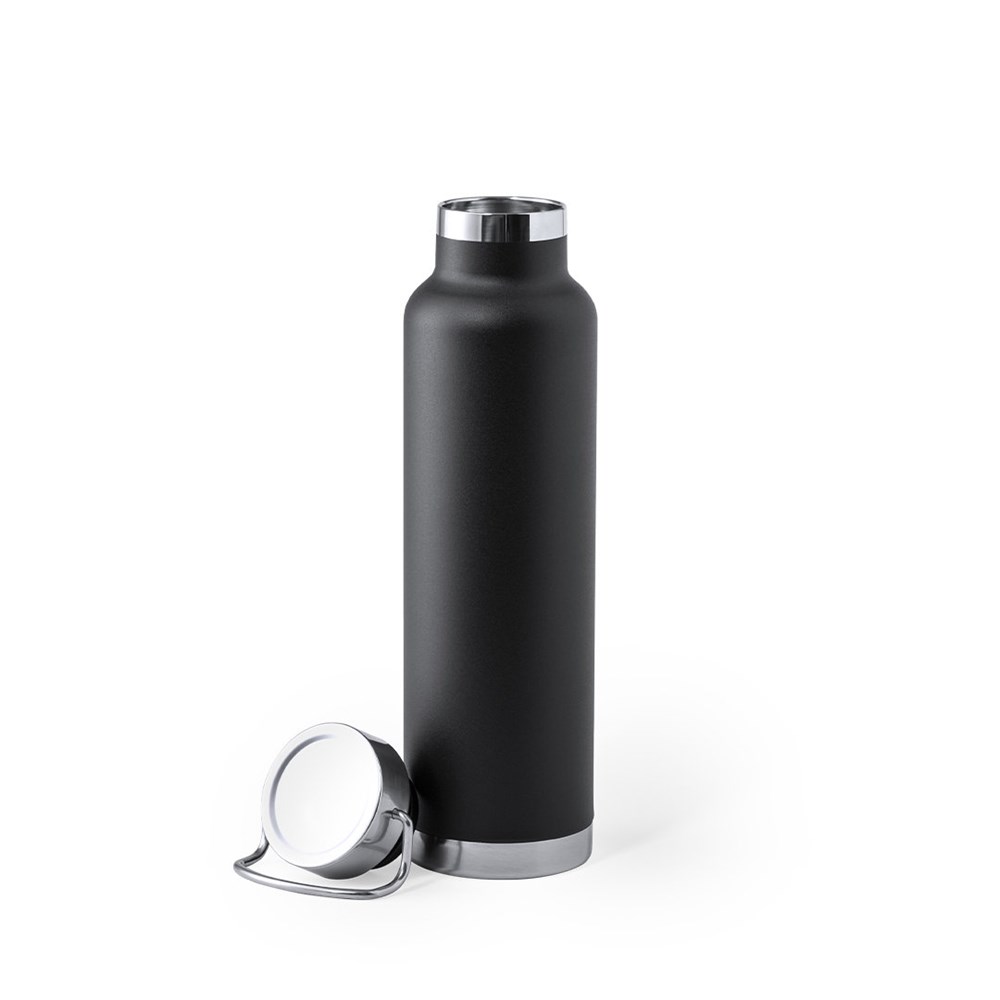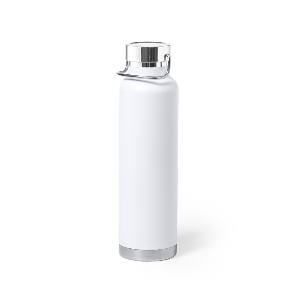 Thermosflasche aus Edelstahl, mit Doppelschicht und Vakuumkupferisolierung. Dieser ermöglicht, die Wärme und Kälte für eine längere Zeit zu halten und dies 12 bzw. 48 Stunden. 650 ml Fassungsvermögen und in einer Vielzahl von Metallicfarben erhältlich. Präsentiert in einer attraktiven Designbox.