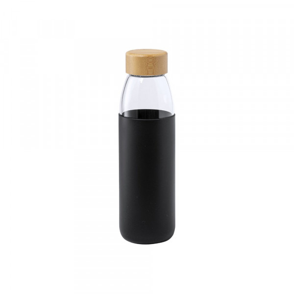 Nature Line Flasche mit 540ml Fassungsvermögen. Hergestellt mit Glaskörper und Bambus-Schraubverschluss. Inklusive Silikonhülle und präsentiert in einer individuellen Box mit attraktivem Design. Dieser Artikel kann nur in 1 Farbe (Schwarz/Weiß) gedruckt werden.