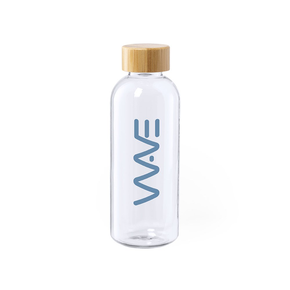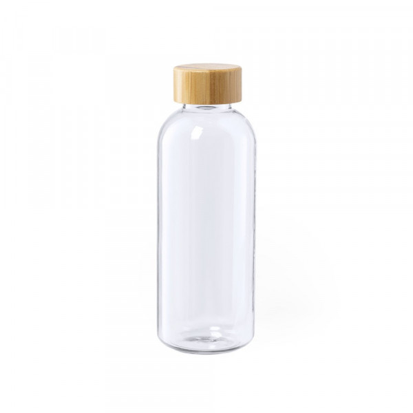 Nature Line Flasche mit einem Fassungsvermögen von 600ml. BPA-frei, mit RPET-Körper, hergestellt aus recyceltem Kunststoff, um die Wiederverwendung von Kunststoffabfällen zu fördern und einen Beitrag zur Nachhaltigkeit des Planeten zu leisten. Mit Bambus-Schraubverschluss.