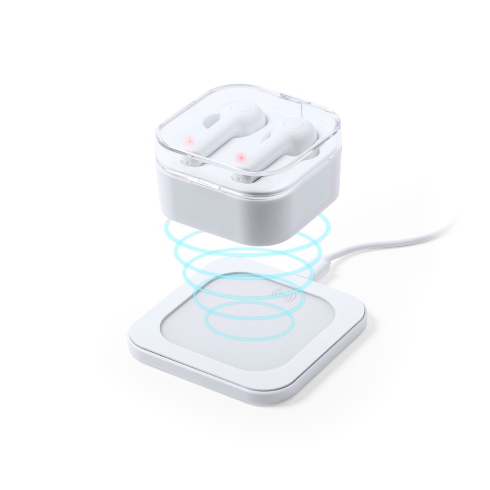 Bluetooth 5.0 In-Ear-Kopfhörer mit kabelloser 5-Watt-Ladestation, kompatibel mit Geräten, die mit kabelloser Ladetechnik ausgestattet sind. Elegantes weißes Finish und ergonomisches Design. Inklusive integrierter Bedientaste an der Hörmuschel und Lithiumbatterie. Passende Ladestation und LED-Ladestatusleuchte. Freisprecheinrichtung und wiederaufladbar, inklusive Ladekabel. Präsentiert im individuellen Deluxe-Etui mit Scharnierdeckel und attraktiver individueller Designbox.