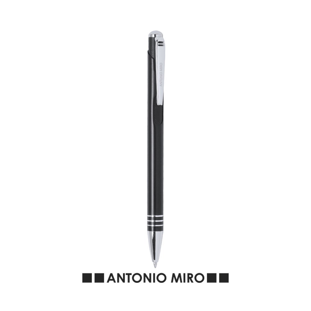 Druck-Kugelschreiber von Antonio Miró mit elegantem Design und geschmeidigem Aluminiumschaft mit silbernen Kontrastdetails. Mit originellem Metallclip und oberem Ende sowie Stanzung aus Karbon. Präsentiert in einem individuellen Aluminium-Case in Schwarz mit dem Markenlogo. Blaue Tinte.
