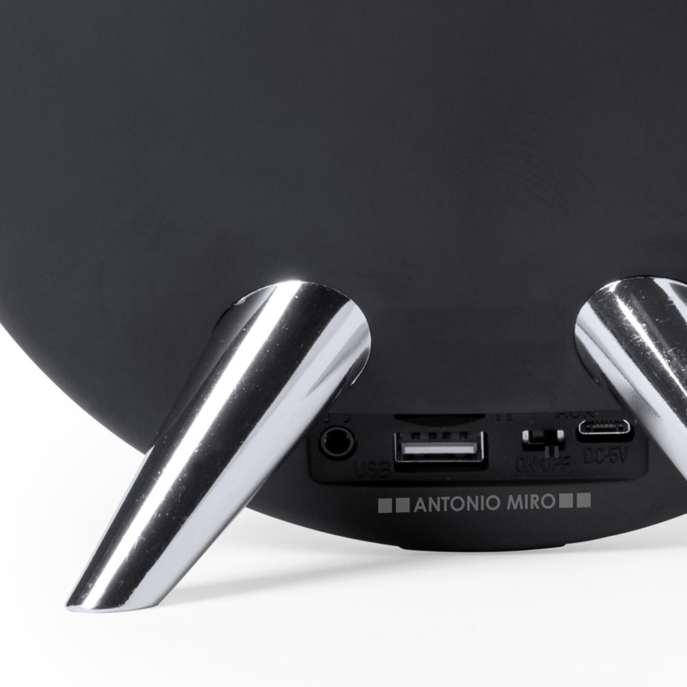 Bluetooth-Lautsprecher in eleganter schwarzer Ausführung mit Kontrastdetails in Silber. Bietet 3 W Leistung, Freisprechfunktion, Slot für Micro SD-Karten von bis zu 32 GB Speicherkapazität und 3,5-mm-Buchse für Audioeingang. Mit rutschfesten Gummi-Details an der Unterseite. Mini-USB-Ladekabel sowie 3,5-mm-Klinkenkabel inklusive. Kompatibel mit iOS- und Android-Geräten. Präsentiert in einer attraktiven Designbox.