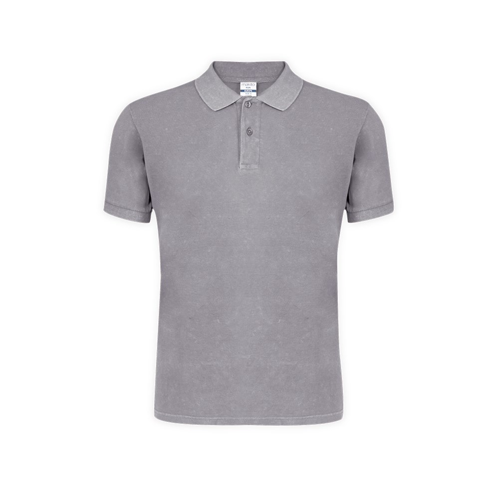 Unisex-Poloshirt mit kurzen Ärmeln und Jeans-Wasch-Effekt, der jedes Stück einzigartig und unwiederholbar macht. Elastische Kontrastdetails an Kragen und Ärmeln. Hergestellt aus 100% gekämmter Baumwolle, Ring Spun 180g/m2. Weicher Griff und moderner Schnitt. Zwei Ton-in-Ton-Knopfleisten. Doppelte Nähte am Saum und an den Ärmeln für mehr Haltbarkeit und Widerstandsfähigkeit bei intensiver Nutzung. Leicht ablösbares Etikett. Erhältlich in den Größen XS, S, M, L, XL und XXL.