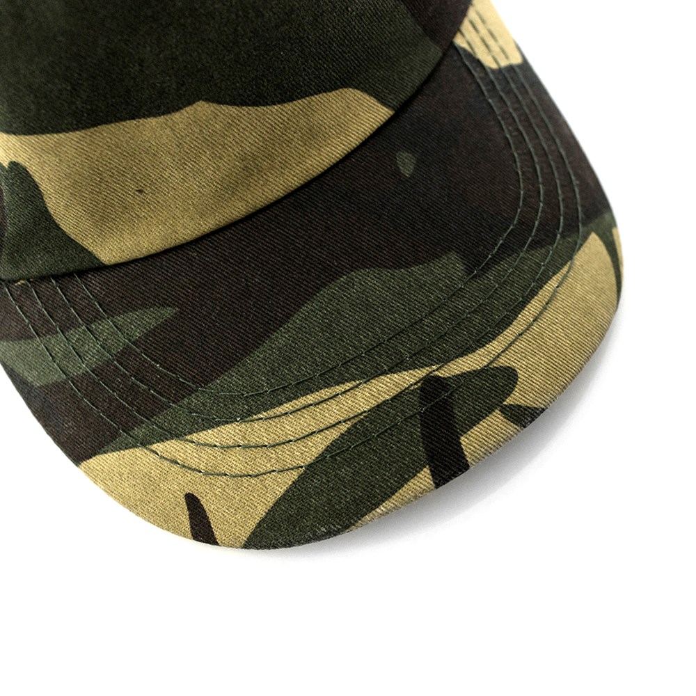 5-Panel-Kappe aus weicher Baumwolle und Polyester mit Tarnmuster. Mit gestickten Belüftungslöchern und verstellbarem Klettverschluss.
