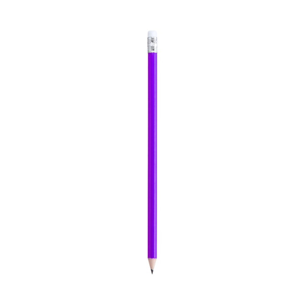 Holzstift mit glänzender Oberfläche. Mit rundem Griff und weißem Radiergummi. Erhältlich in einer Vielzahl von Farben. Schwarze Mine und scharfe Spitze.