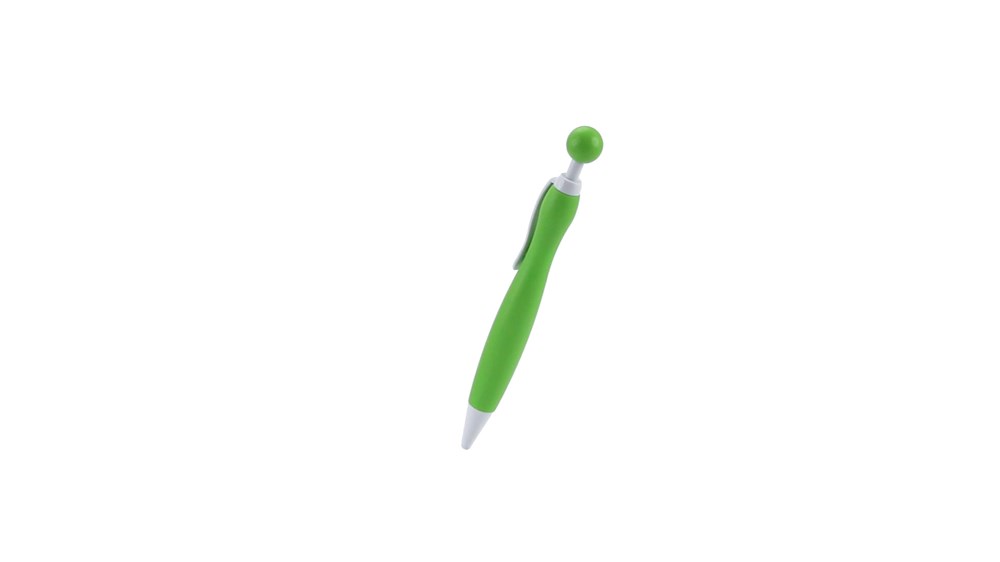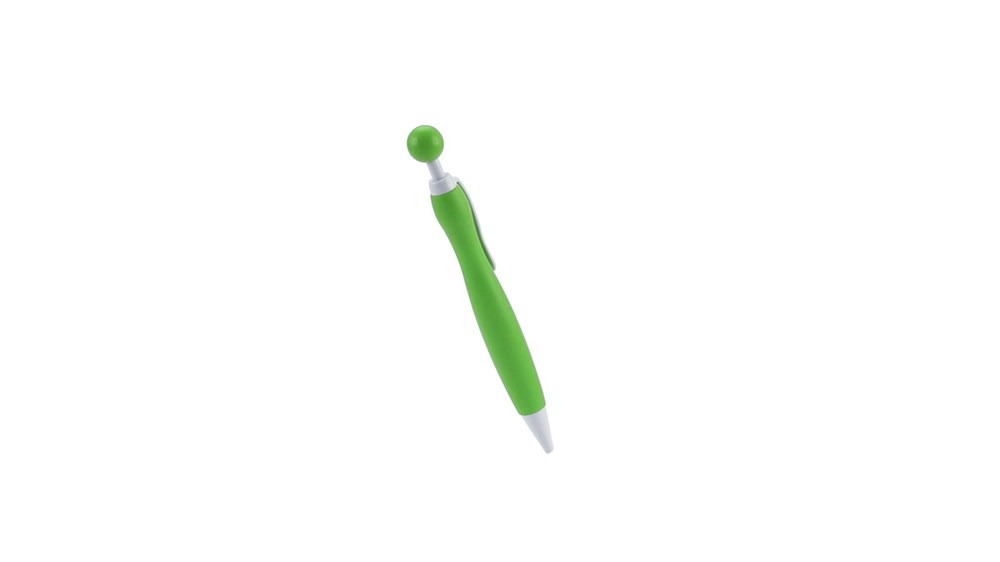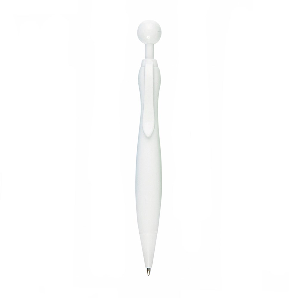 Druck-Kugelschreiber mit auffälligem, zweifarbigem Design und Kontrastdetails in solidem Weiß. Mit geschwungenem Schaft in auffälligen, soliden Farben und originellem, kugelförmigem Druckknopf. Jumbo-Patrone mit blauer Tinte.