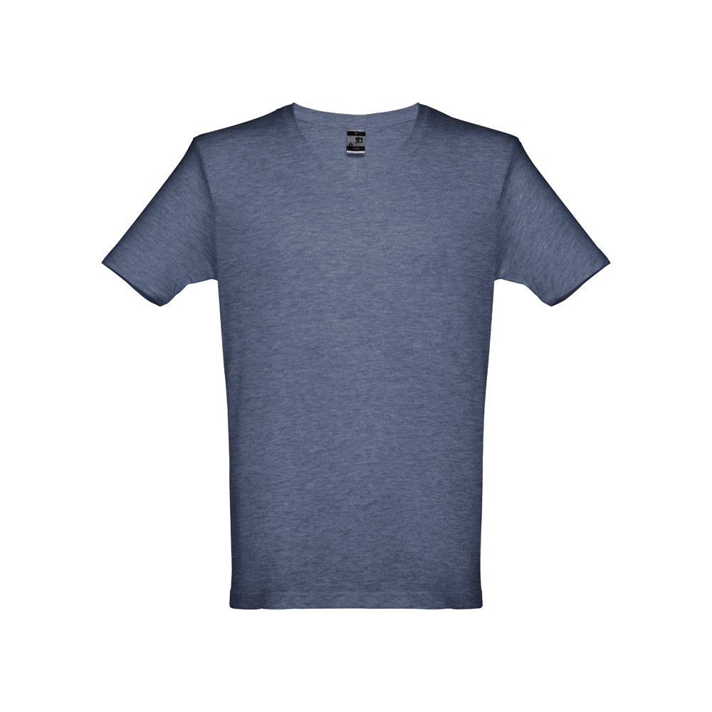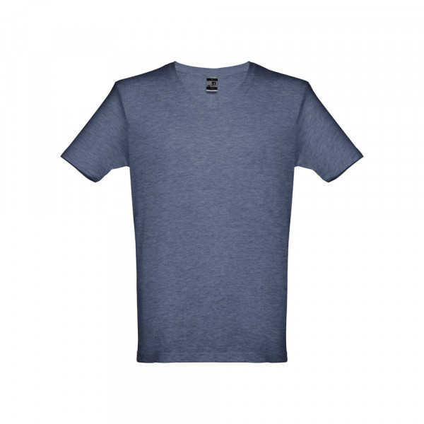 Herren T-Shirt aus 100% Strickjersey und Baumwolle (150g/m²) mit kardiertem Baumwollfaden in Tubular-Form, mit V-Ausschnitt, Verstärkungsband, Jersey-Kragen und Doppelnaht an Ärmeln und Saum. Bei den Farben 194, 195 und 199 bestehend aus 60% Baumwolle und 40% Polyester. Größen: S, M, L, XL, XXL