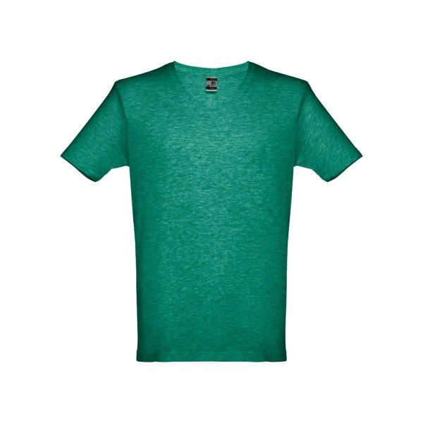 Herren T-Shirt aus 100% Strickjersey und Baumwolle (150g/m²) mit kardiertem Baumwollfaden in Tubular-Form, mit V-Ausschnitt, Verstärkungsband, Jersey-Kragen und Doppelnaht an Ärmeln und Saum. Bei den Farben 194, 195 und 199 bestehend aus 60% Baumwolle und 40% Polyester. Größen: S, M, L, XL, XXL