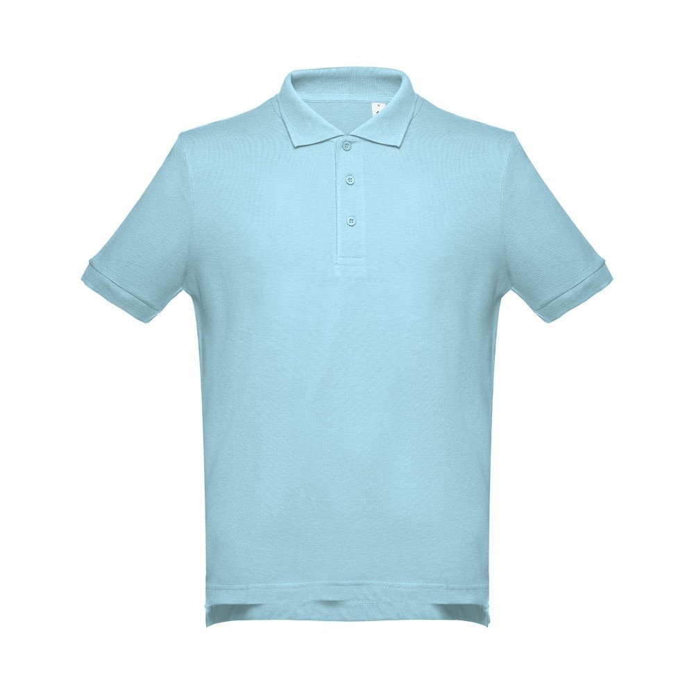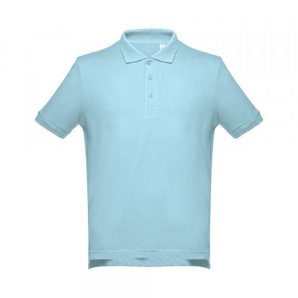 Herren Poloshirt aus Piqué Stoff 100% Baumwolle (195g/m²). Gerippter Kragen und Ärmel. Verstärkungsband am Kragen und verstärkte Knopfleiste mit 3 farblich abgestimmten Knöpfen. Unten mit seitlichen Öffnungen. Ersatzknopf an der Innennaht. Bei der Farbe 183 bestehend aus 85% Baumwolle und 15% Viskose. Größen: S, M, L, XL, XXL