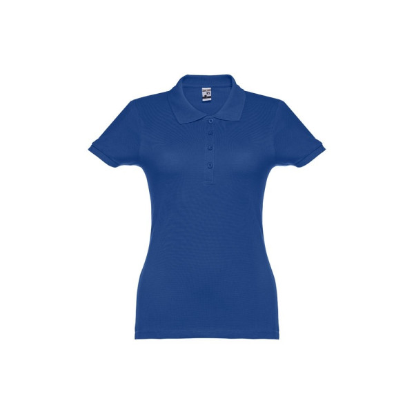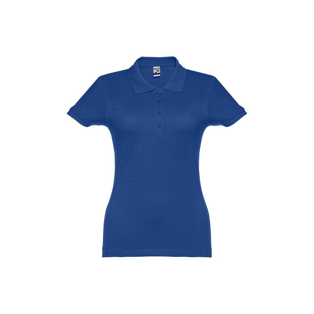 Damen Poloshirt aus Piqué Stoff 100% kardierter Baumwolle (195 g/m²), mit geripptem Kragen und Ärmel, Verstärkungsband am Kragen, verstärkte Knopfleiste mit 4 farblich abgestimmten Knöpfen und einem Ersatzknopf an der Innennaht.Bei der Farbe 183 bestehend aus 85% Baumwolle und 15% Viskose. Größen: S, M, L, XL, XXL
