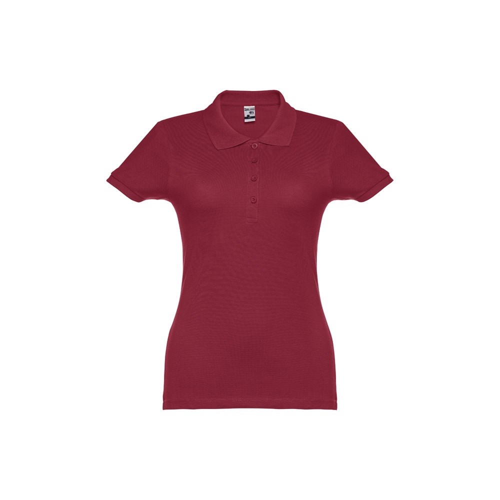 Damen Poloshirt aus Piqué Stoff 100% kardierter Baumwolle (195 g/m²), mit geripptem Kragen und Ärmel, Verstärkungsband am Kragen, verstärkte Knopfleiste mit 4 farblich abgestimmten Knöpfen und einem Ersatzknopf an der Innennaht.Bei der Farbe 183 bestehend aus 85% Baumwolle und 15% Viskose. Größen: S, M, L, XL, XXL