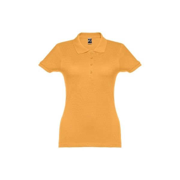 Damen Poloshirt aus Piqué Stoff 100% kardierter Baumwolle (195 g/m²), mit geripptem Kragen und Ärmel, Verstärkungsband am Kragen, verstärkte Knopfleiste mit 4 farblich abgestimmten Knöpfen und einem Ersatzknopf an der Innennaht.Bei der Farbe 183 bestehend aus 85% Baumwolle und 15% Viskose. Größen: S, M, L, XL, XXL
