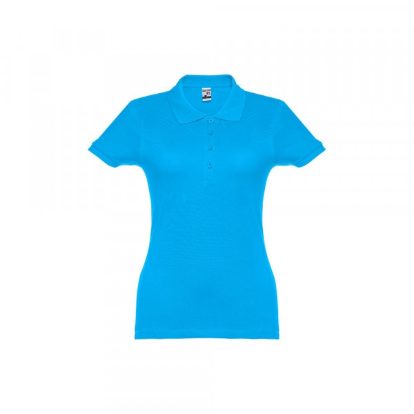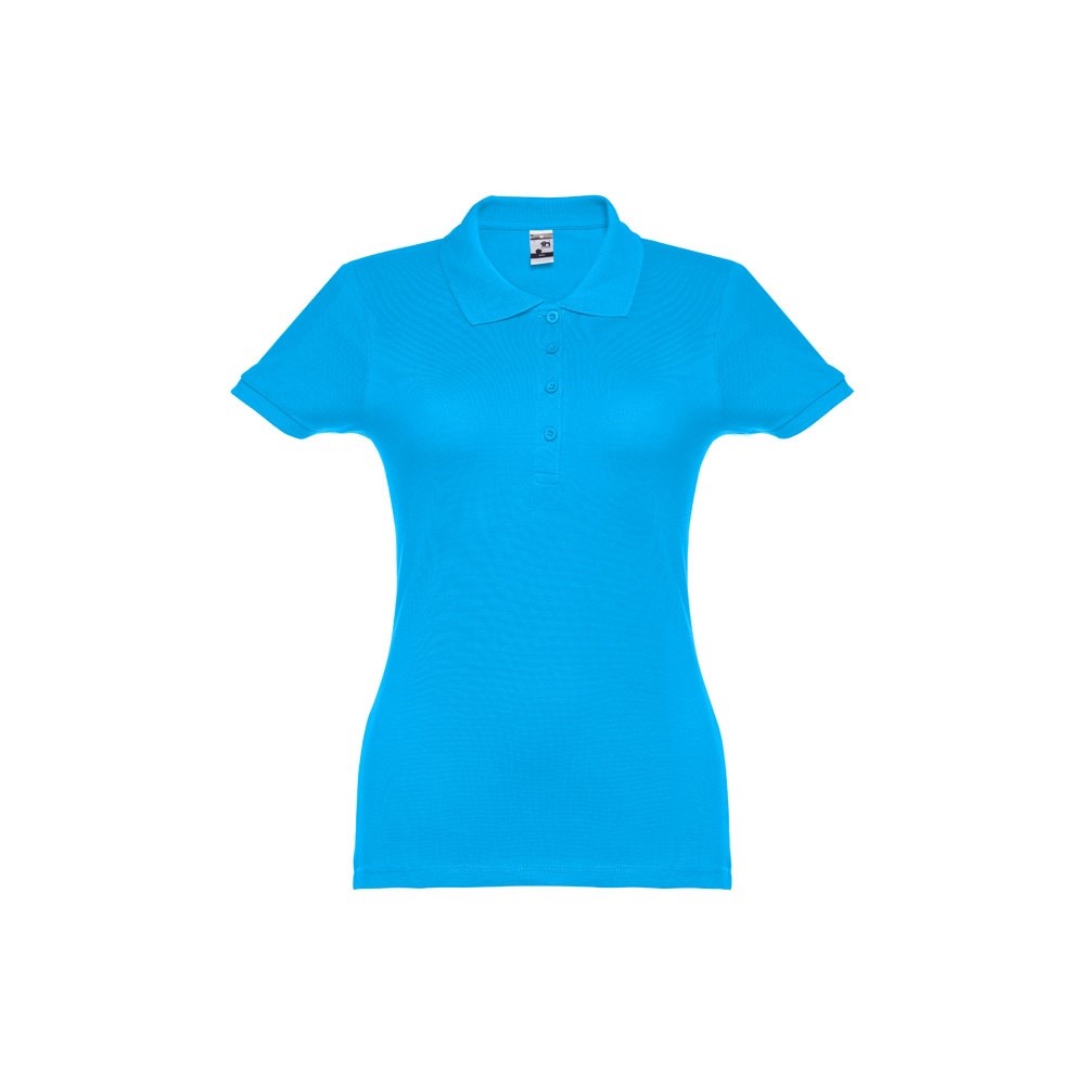 Damen Poloshirt aus Piqué Stoff 100% kardierter Baumwolle (195 g/m²), mit geripptem Kragen und Ärmel, Verstärkungsband am Kragen, verstärkte Knopfleiste mit 4 farblich abgestimmten Knöpfen und einem Ersatzknopf an der Innennaht.Bei der Farbe 183 bestehend aus 85% Baumwolle und 15% Viskose. Größen: S, M, L, XL, XXL