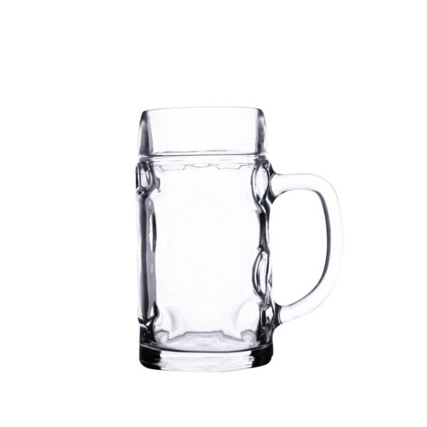 Ein solider und handlicher Bierkrug mit charakteristischen Vertiefungen in den Wänden. Die Vertiefungen verleihen dem Getränk im Inneren einen dreidimensionalen Effekt.