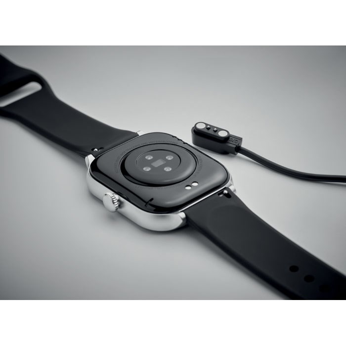 5.4 wireless Fitness Smart Watch aus Zinklegierung mit Silikonarmband. 2,01'''' Touch-LCD-Display. Wiederaufladbarer Li-Pol-Akku 180 mAh. Der Download der kostenlosen App (Hryfine) ist erforderlich. Erhältlich für iOS und Android.