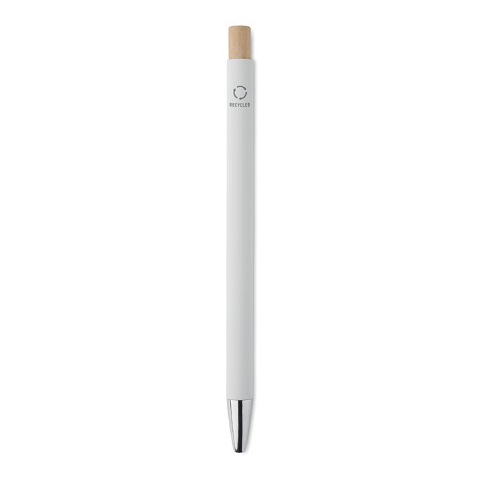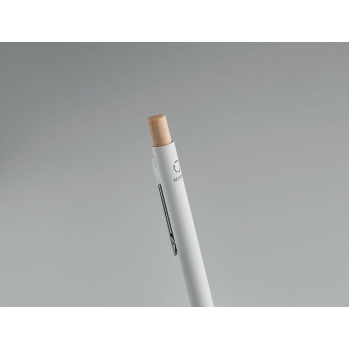Druckkugelschreiber aus recyceltem Aluminium mit Druckknopf aus Bambus. Silberne Spitze und Clip.... mehr