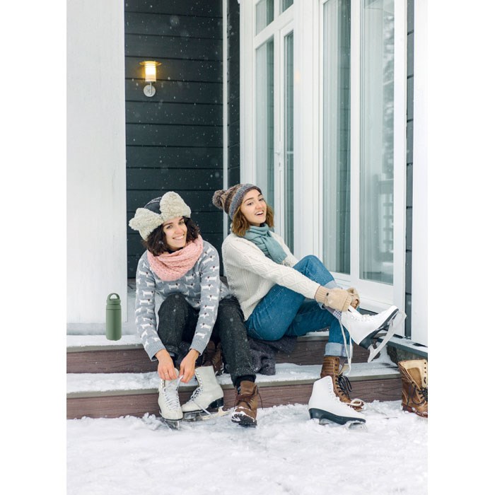 Doppelwandige Isolierflasche aus recyceltem Edelstahl (90 % recycelter Edelstahl und 10 % Edelstahl) mit doppelter Deckelöffnung aus PP zur einfachen Reinigung. Auslaufsicher. Füllmenge: 320 ml.