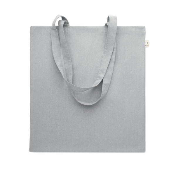 Einkaufstasche aus recycelter Post-Consumer-Baumwolle (70 % recycelte Baumwolle und 30 % RPET) mit langen Tragegriffen. 140 g/m². Artikel kann nach dem Bedrucken schrumpfen.