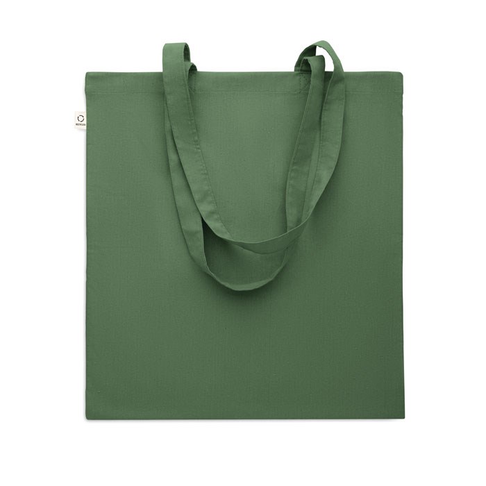 Einkaufstasche aus recycelter Post-Consumer-Baumwolle (70 % recycelte Baumwolle und 30 % RPET) mit langen Tragegriffen. 140 g/m². Artikel kann nach dem Bedrucken schrumpfen.