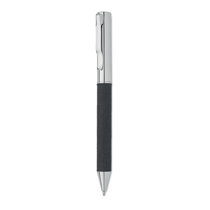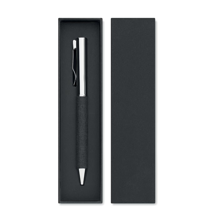 Drehkugelschreiber aus Metall mit Details aus RPET-Polyester. Lieferung in Geschenkbox. Blaue Tinte.